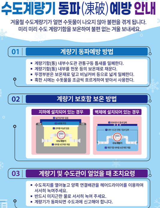 겨울철 수도관 동파 예방을 위한 필수 가이드! 수도계량기 보온부터 동파 시 대처방법까지, 전문가가 알려주는 실용적인 동파방지 노하우와 최신 관리 팁을 한눈에 확인하세요.