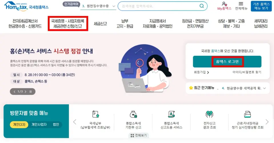 홈택스를 통한 국세납세증명서 발급 방법