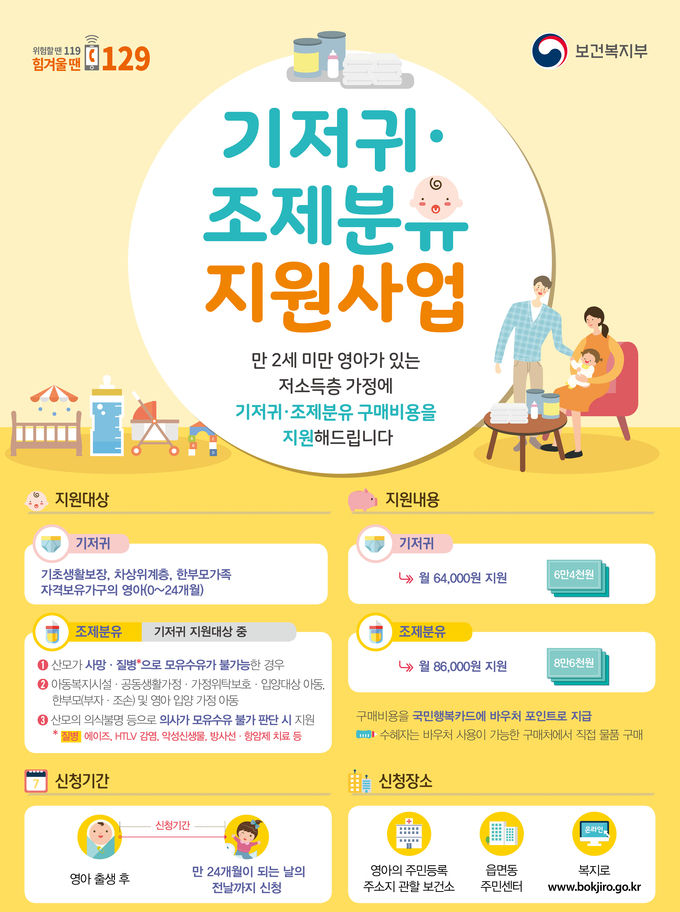 - 신청 장소: 영아의 주민등록 주소지 관할 행정복지센터