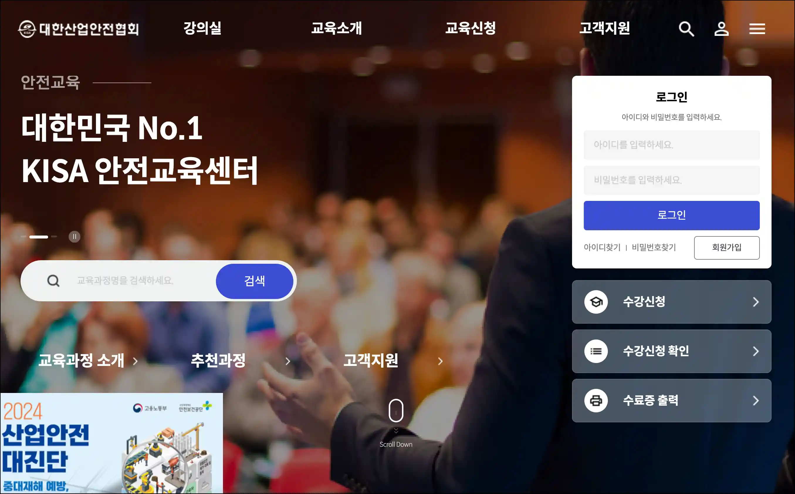 1단계: 대한산업안전협회 홈페이지 회원가입