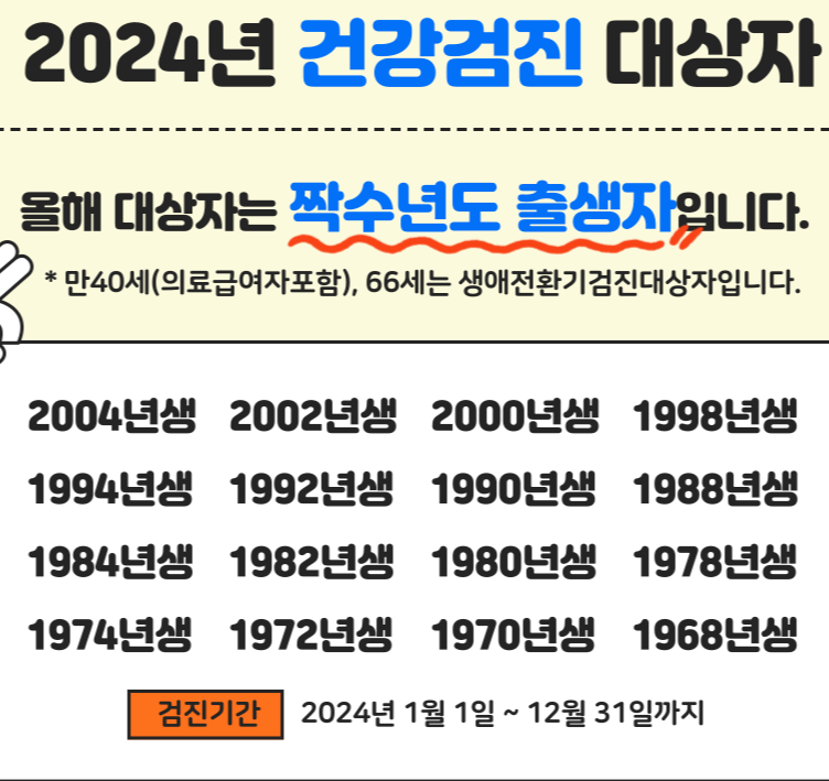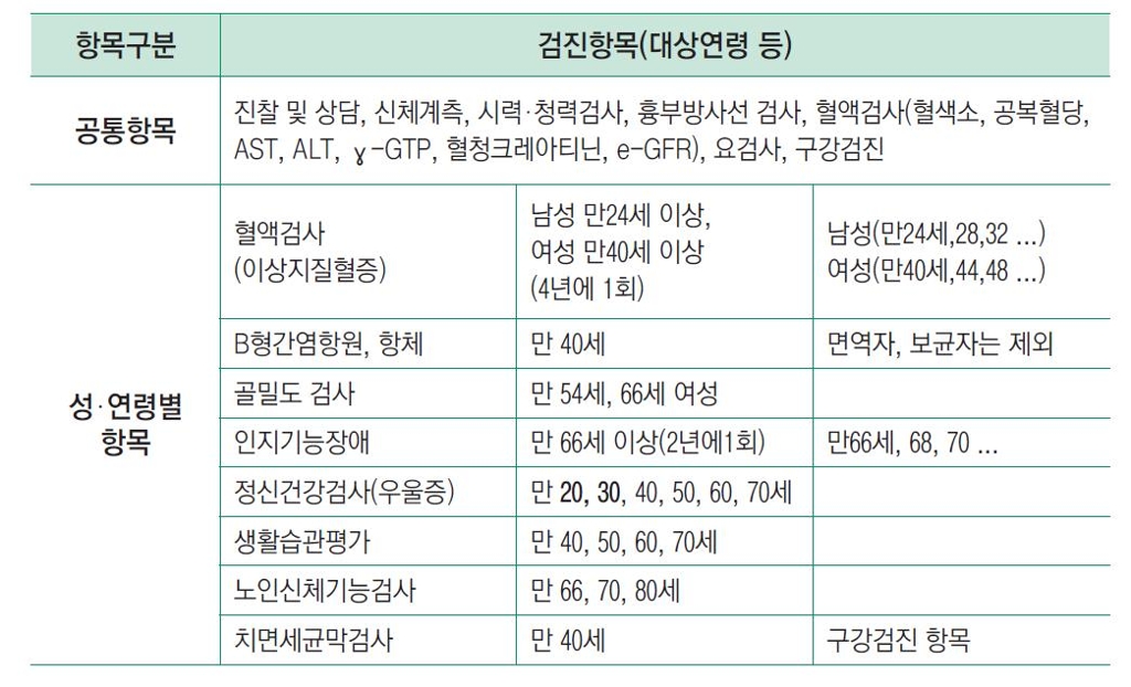 국가건강검진 대상자라면, 검진 시기와 항목을 꼭 확인하세요. 나이와 성별에 따라 검진 항목이 다를 수 있습니다.