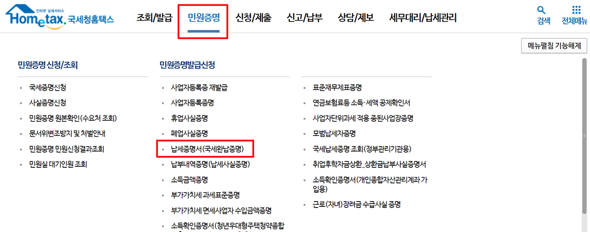 국세납세증명서 인터넷발급 바로가기 2025 [최신 발급방법]