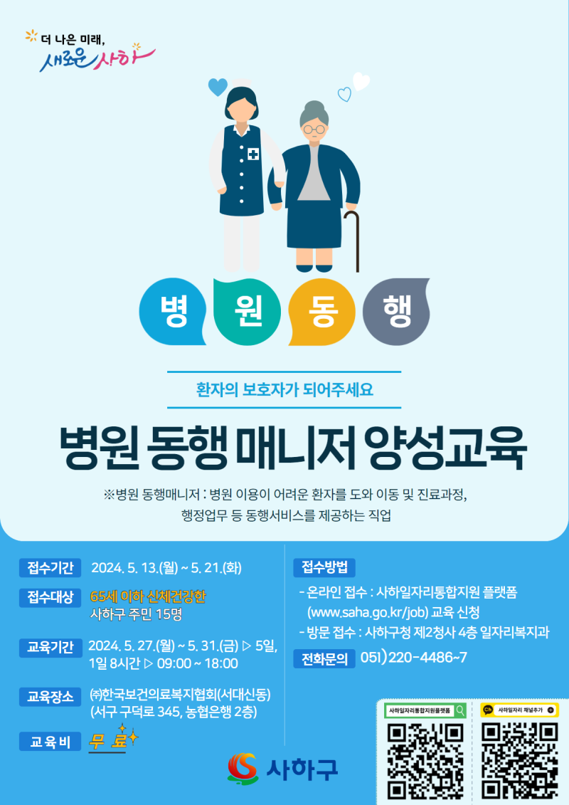 - 병원동행매니저 교육과정 이수 (전문 지식, 기술, 응급처치 등)