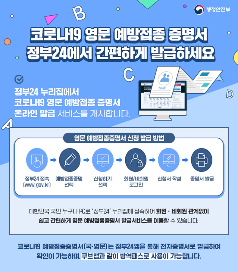 예방접종증명서 인터넷 발급은 다음과 같은 간단한 절차로 이루어집니다: