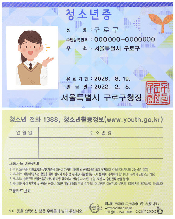 - 분실신고: 가까운 주민센터 또는 청소년종합지원센터
