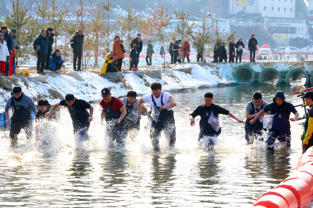 홍천 강 꽁꽁축제의 대표 프로그램인 송어 체험은 2025년에 더욱 다양해졌습니다. 전통적인 얼음낚시부터 맨손잡기, 새롭게 도입된 송어 요리 교실까지, 다채로운 체험이 가능합니다.